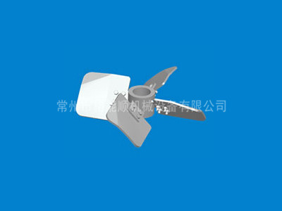 旋槳式攪拌器由2~3片推進(jìn)式螺旋槳葉構(gòu)成,工作轉(zhuǎn)速較高,葉片外緣的圓周速度一般為5~15m/s。旋槳式攪拌器主要造成軸向液流,產(chǎn)生較大的循環(huán)量,適用于攪拌低粘度 (<2Pa·s)液體、乳濁液及固體微粒含量低于10%的懸浮液。攪拌器的轉(zhuǎn)軸也可水平或斜向插入槽內(nèi),此時液流的循環(huán)回路不對稱,可增加湍動,防止液面凹陷。
